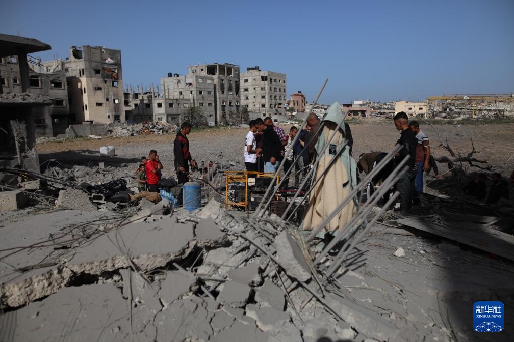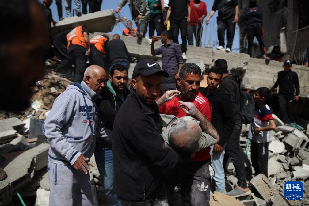 3月31日,在加沙地带中部迈加齐难民营,人们在以军空袭后开展救援。