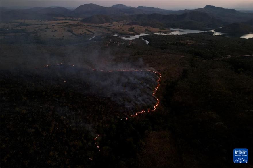 这是9月9日在巴西戈亚斯州拍摄的山火(无人机照片)。