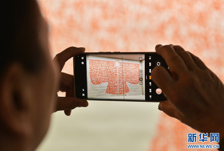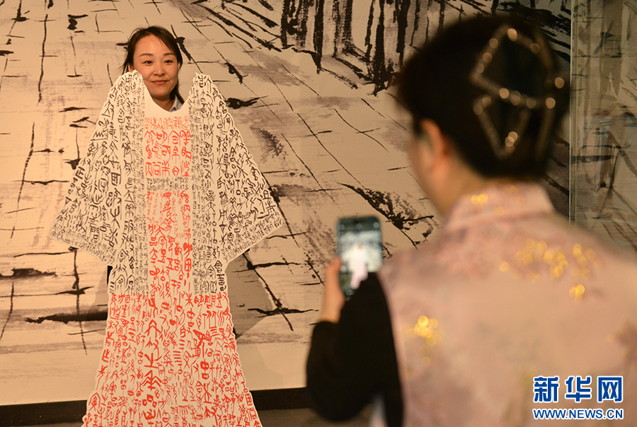 4月21日,在中国文字博物馆,游客在拍摄展出的作品。