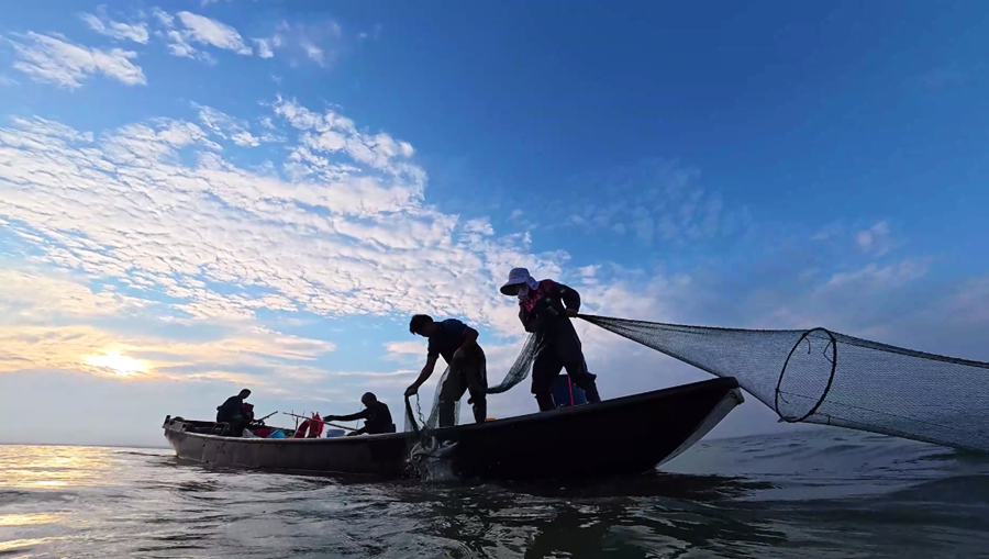 近日,经过100多天的封湖禁渔期,安徽省宣城市南漪湖迎来秋季开捕。随着渔网逐渐起水,一尾尾鲜活肥硕的鱼儿不停地跃出水面。渔民熟练地完成分拣、装箱、搬运工作,将鲜鱼送往市场。(李晓红)
