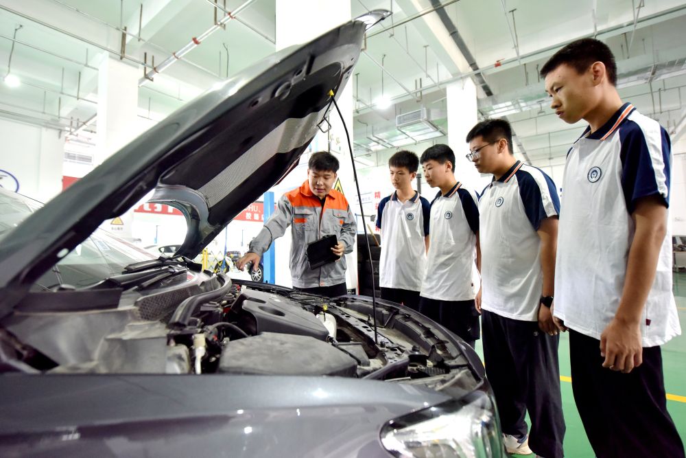 2024年6月7日,河北省邢台市威县职业技术教育中心教师在指导学生学习汽车维修技术。新华社记者 王晓 摄