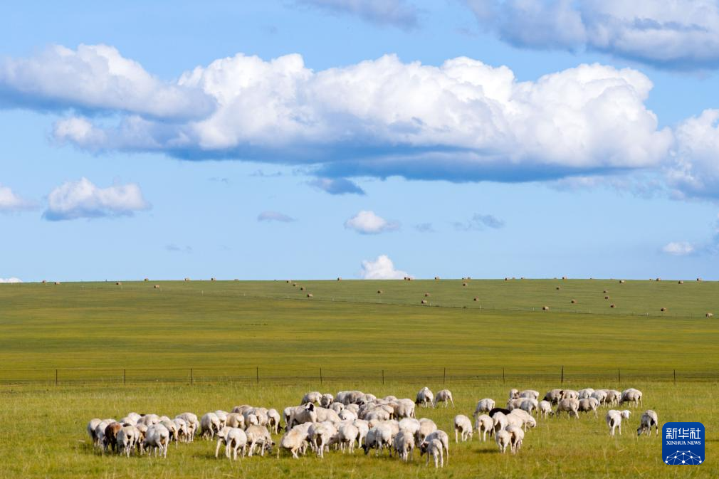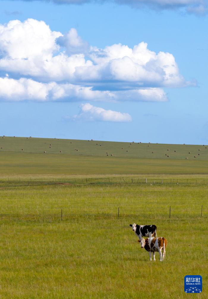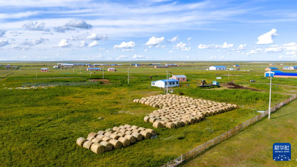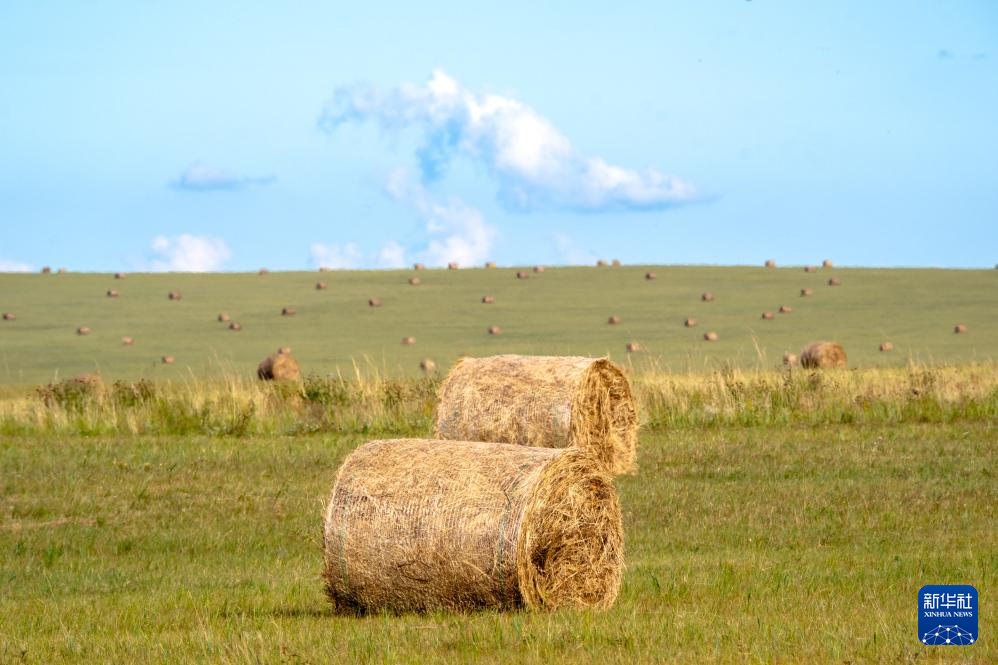 初秋时节,内蒙古呼伦贝尔大草原草色渐黄。在辽阔的草原上,牧民将丰收的牧草捆扎成卷,成群的牛羊、马匹漫步其间,勾勒出一幅祥和美丽的秋日丰收图景。