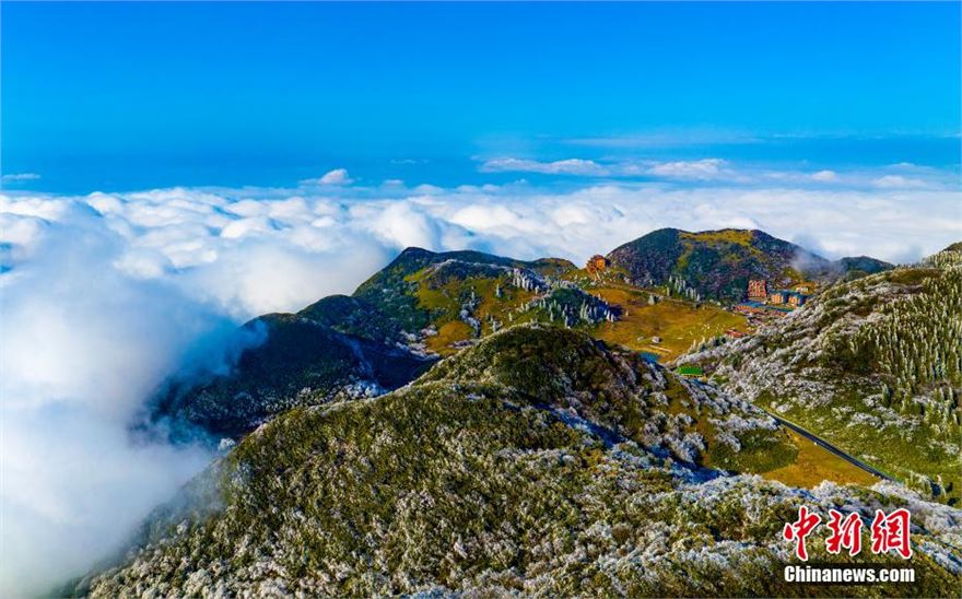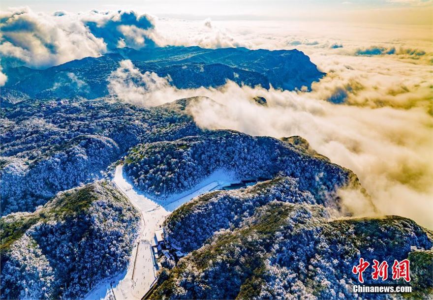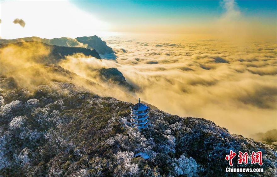近日,重庆南川金佛山雪后放晴,出现了云海景观,浩瀚的云海在金佛山喀斯特桌山的陡崖上涌动,呈现一幅壮丽的山河美景。重庆金佛山是世界自然遗产和国家5A级旅游景区,最高峰海拔2238米。因海拔落差较大,在冬季雪后容易出现云海气象奇观。