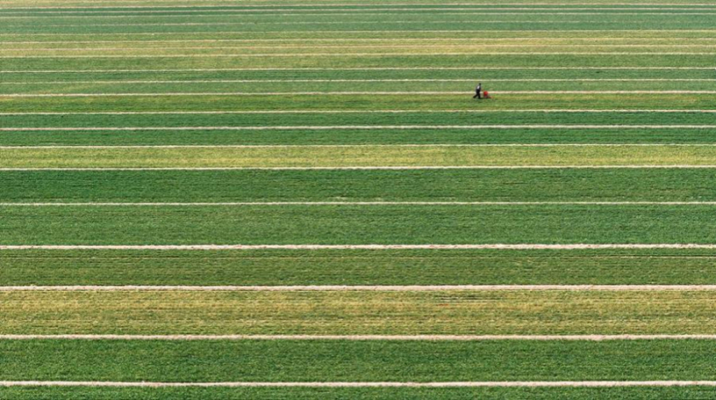 3月14日,浙江省湖州市德清县洛舍镇东衡村先丰农业智能育秧工厂内,工人在观察早稻秧苗长势。新华社发(谢尚国 摄)