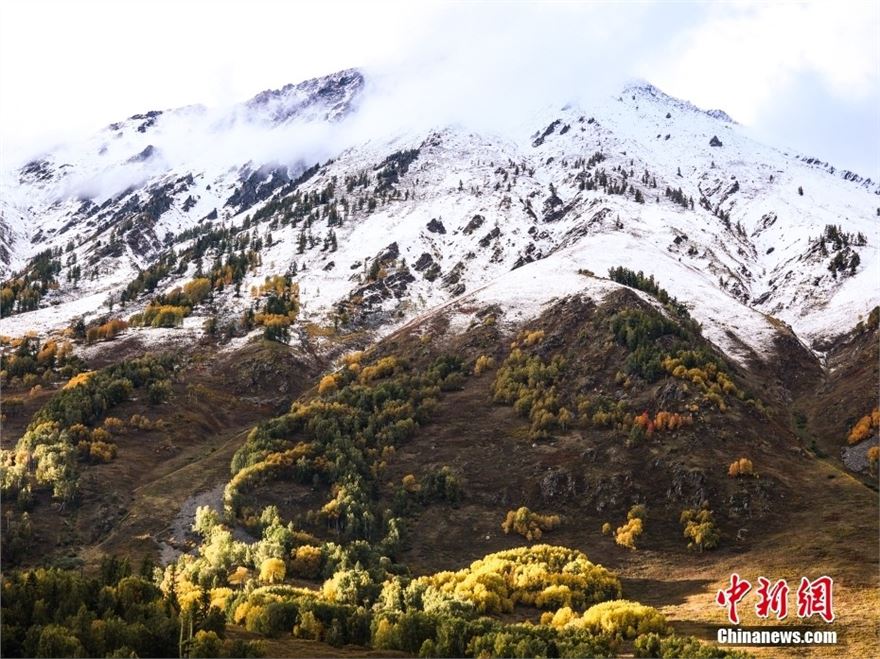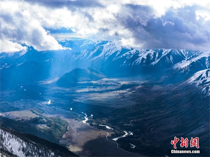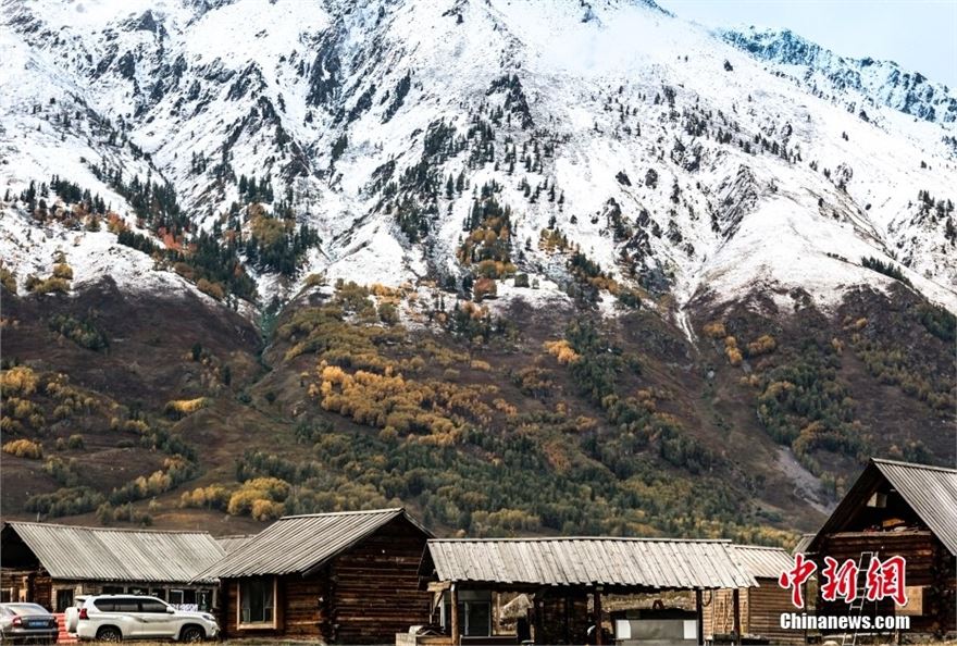 近日,一场降雪过后,新疆阿勒泰地区布尔津县禾木景区银装素裹,美若仙境。