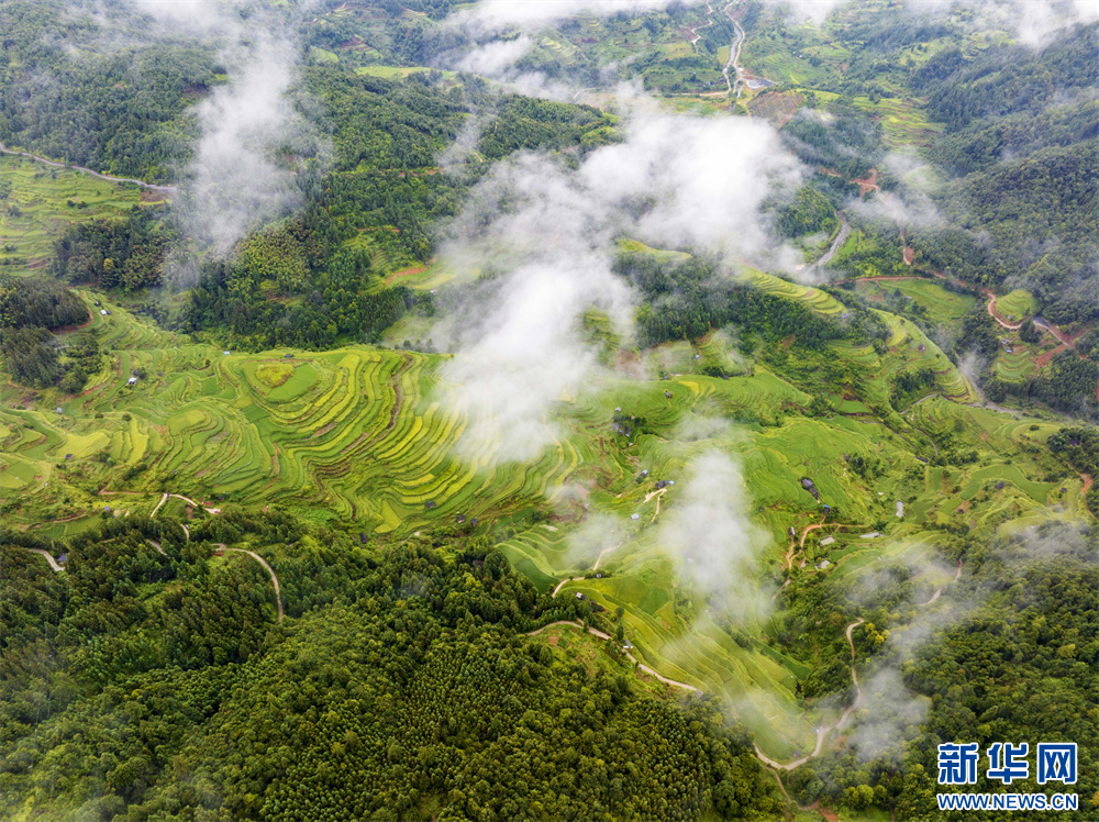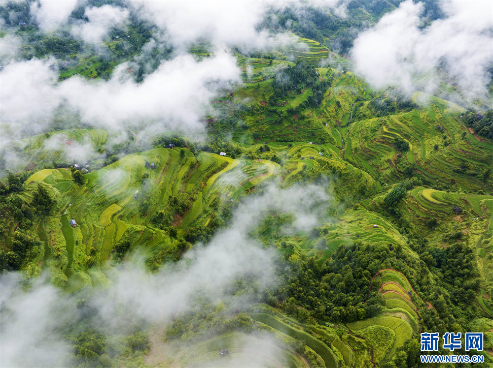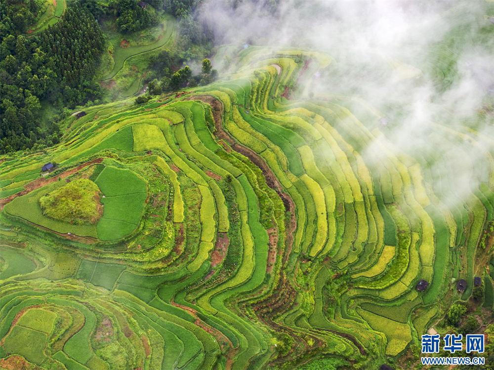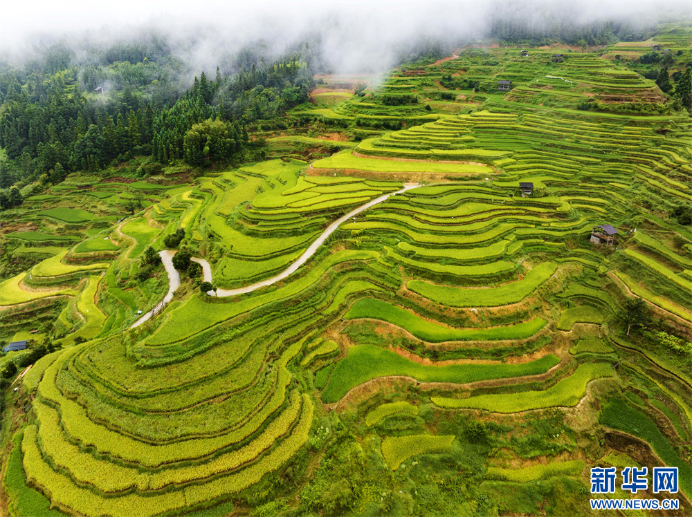 初秋时节,贵州省黔东南苗族侗族自治州从江县境内,层层梯田稻谷初黄,与鳞次栉比的民居、蜿蜒穿越的公路、清澈流淌的河流、苍翠连绵的青山以及缭绕山间的云雾交相辉映,共同勾勒出一幅生态与人文和谐共生的壮美画卷。