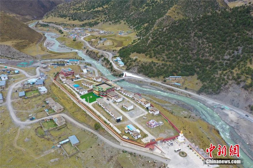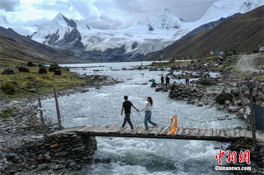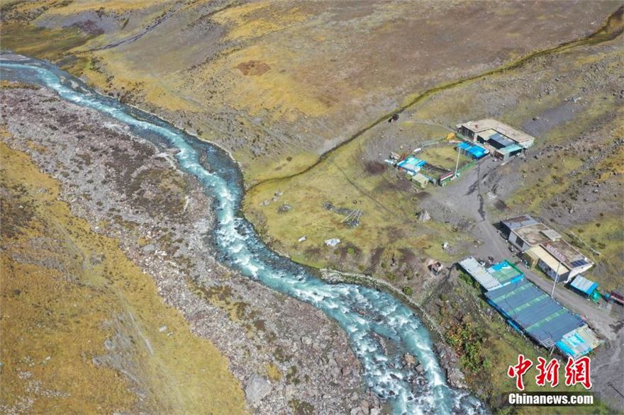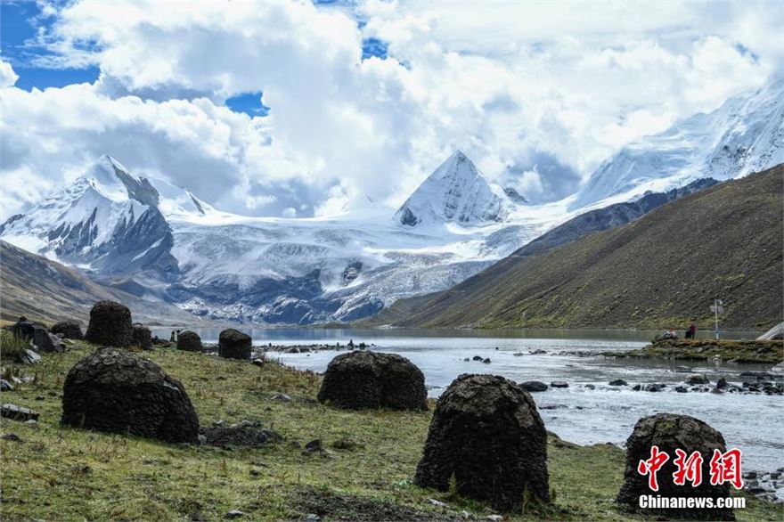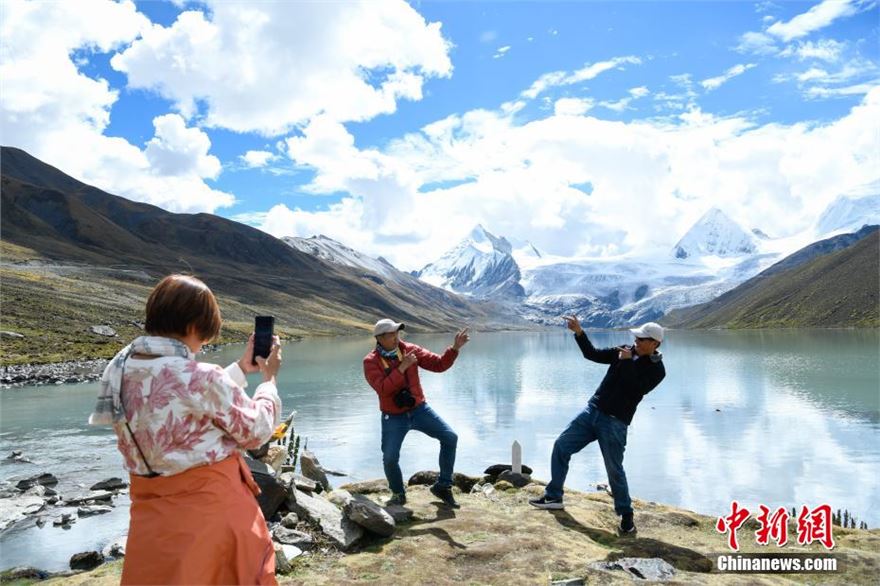 9月26日,在西藏那曲市比如县境内的萨普雪山,蓝天、雪山、湖泊构成一幅美丽的生态画卷。近年来,随着交通条件不断改善,越来越多的游客来到萨普雪山领略壮美风光。图为萨普雪山。(无人机照片)