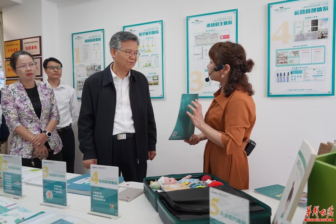 (5月9日上午,李殿勋来到湖南湘军教育科技有限公司,考察女性创业就业情况。)