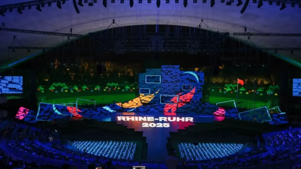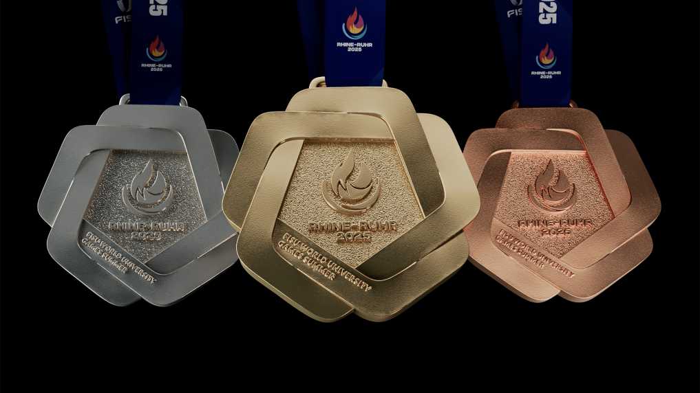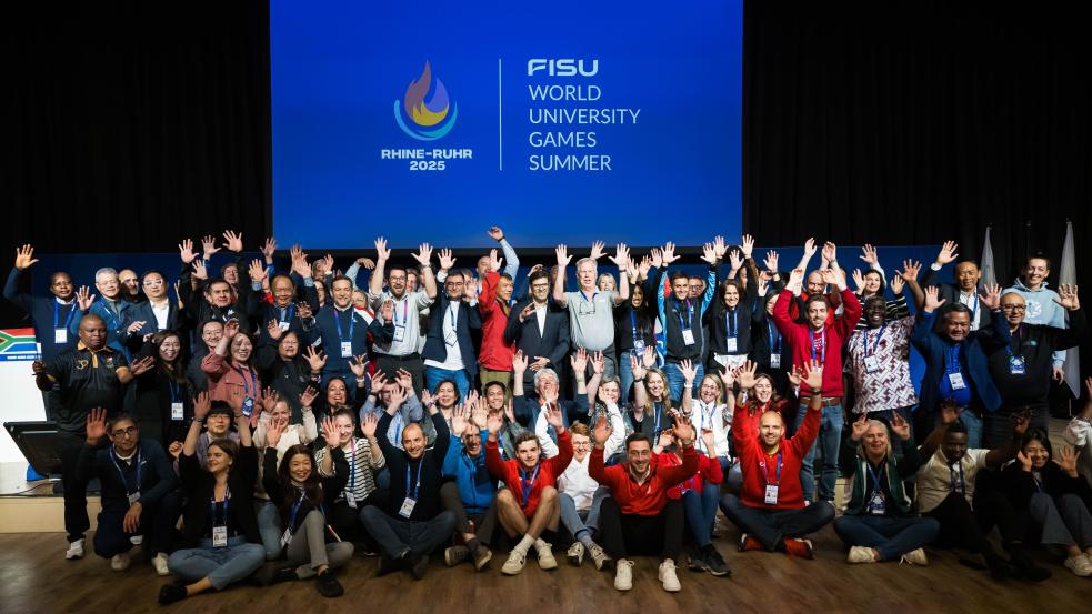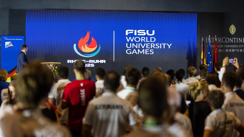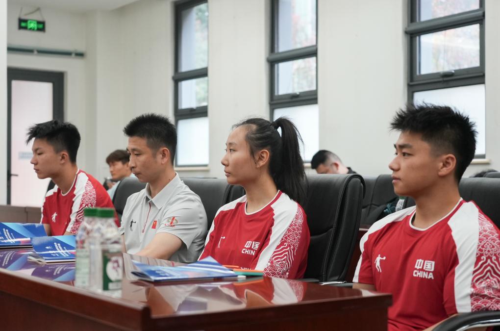 7月8日,中国大学生体育代表团运动员和教练员代表在主会场出征仪式上。新华社记者 胡星宇 摄