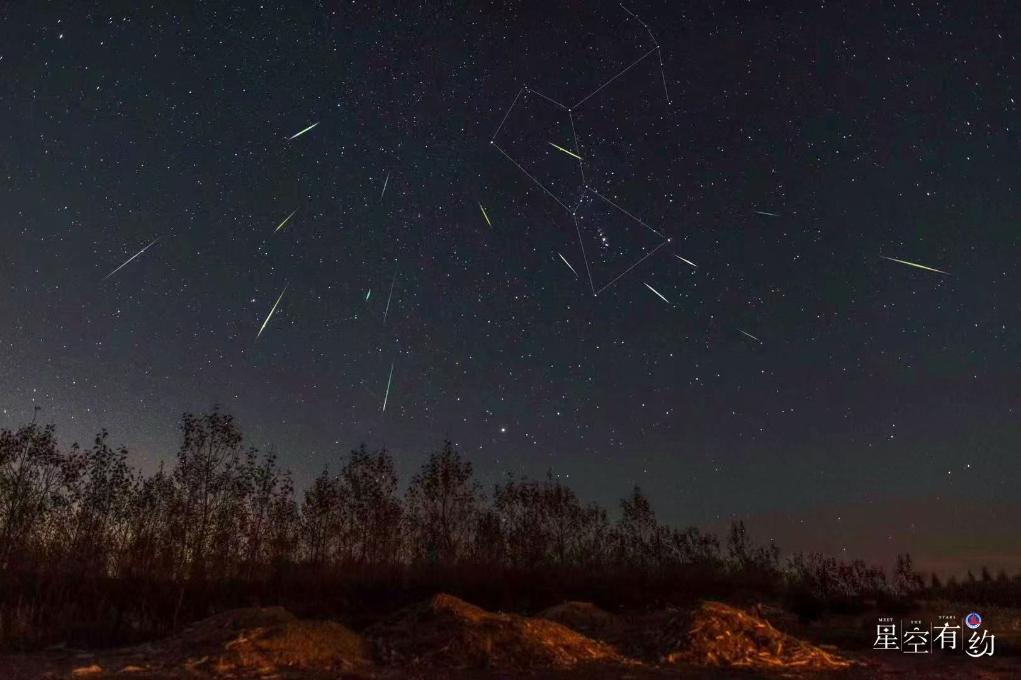 2020年10月21日,在黑龙江大庆拍摄的猎户座流星雨(多张叠加)。(刘成山 摄)