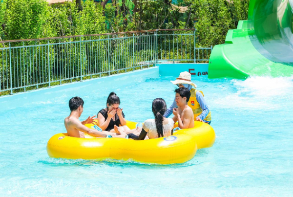 其中,《大喇叭》最高平台近19米,游客乘坐皮筏自最高处滑下,盘旋加速,解压又刺激;真实模拟海洋冲浪的《飓风湾》,拥有多达8种模式的波浪冲击,游客可尽情体验大海的汹涌与澎湃;《熊出没水寨》融合动漫元素打造了多款适合儿童及亲子互动的家庭戏水项目,是孩子们的天地。