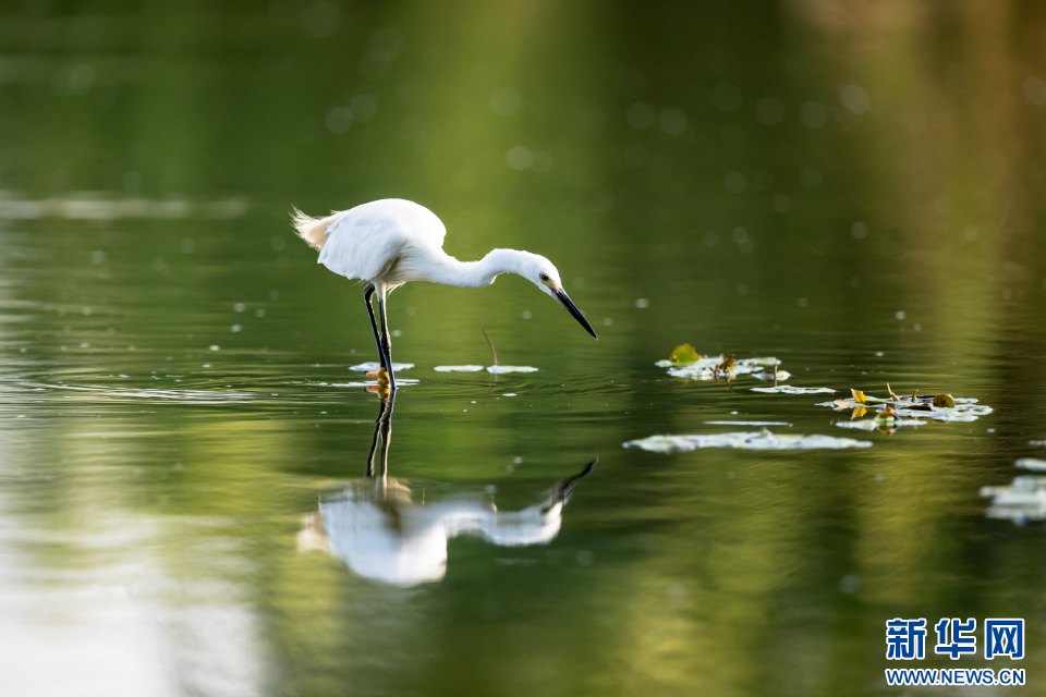 一只白鹭在沭河郯城段捕食。新华网发(刘宗强 摄)