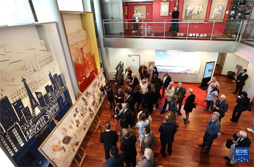 9月18日,在法国巴黎中国文化中心,嘉宾在展览上参观。