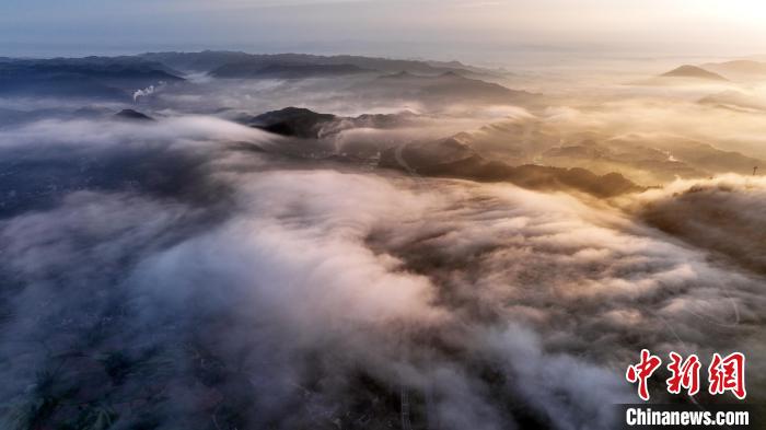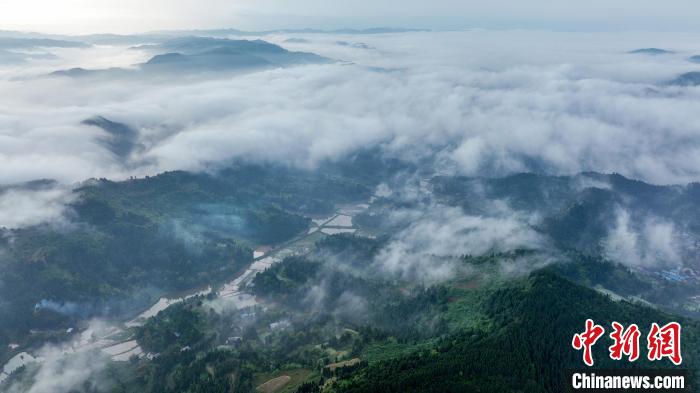 4月17日清晨,四川省南充市蓬安县多地出现云雾景观,宛若仙境,从高处俯瞰,田园、村庄和山峦在云雾中若隐若现,如梦如幻,构成一幅秀美的乡村画卷。