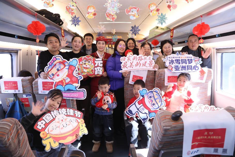 猜灯谜、摇元宵、做灯笼,乘务员将一碗碗热气腾腾的元宵送到旅客手中……2月12日,是传统的元宵节。北京局集团公司北京客运段京哈高铁车队“星意乘务组”列车长野玉丽,在北京开往吉林方向的G913次列车上开展“手摇元宵庆佳节 高铁列车暖相伴”活动。精心装扮的车厢,充满了节日的气氛。