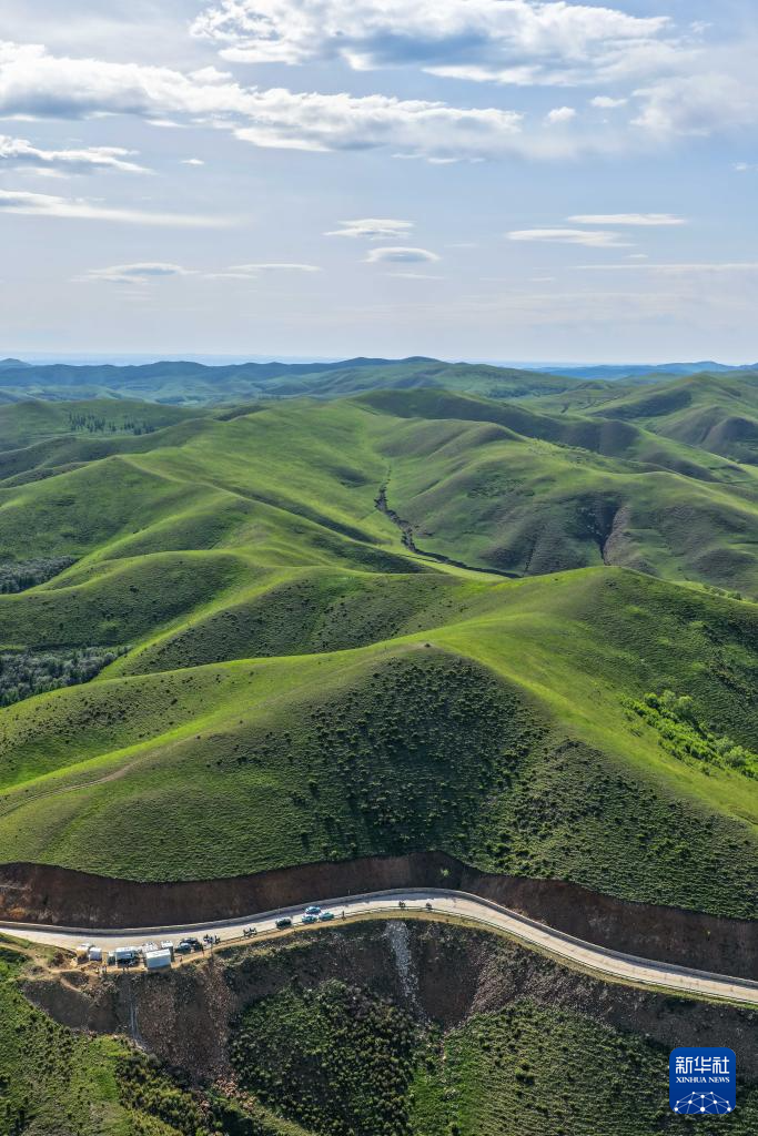 这是6月5日在内蒙古大青山国家级自然保护区拍摄的草原风光(无人机照片)。