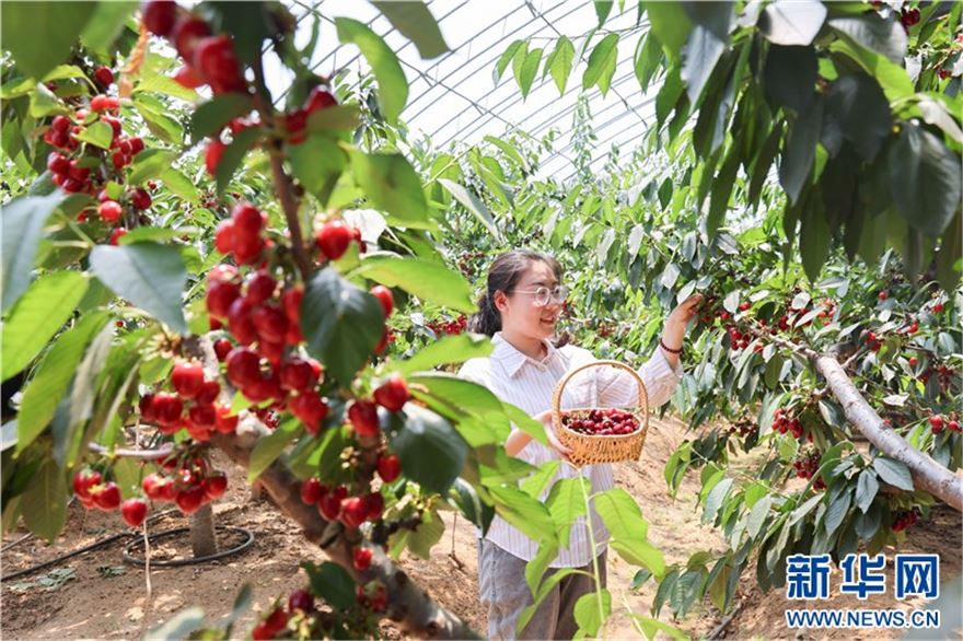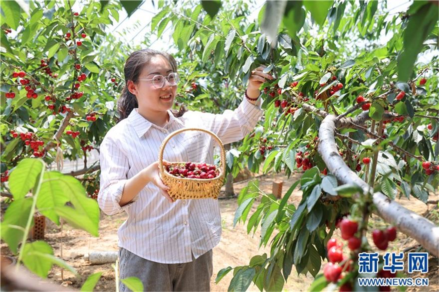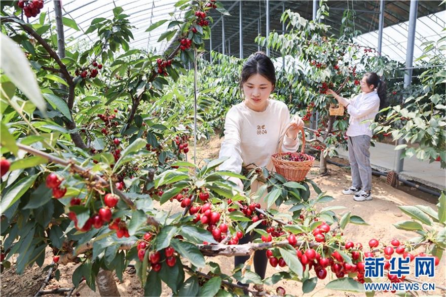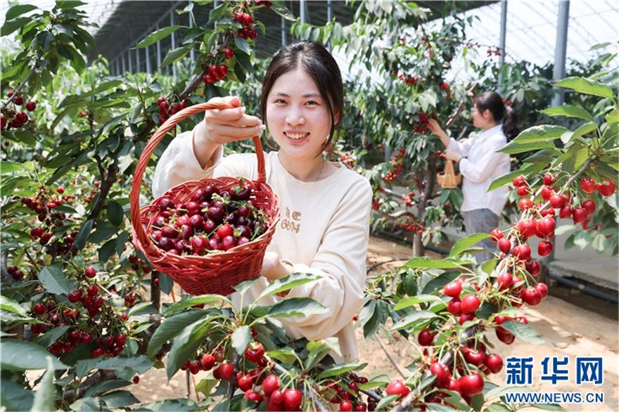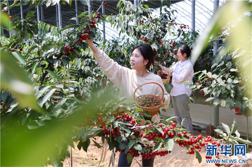 近日,在连云港市赣榆区塔山镇太平村樱桃大棚里,一颗颗晶莹饱满的樱桃挂满枝头,吸引众多游客前来采摘。近年来,赣榆区根据当地气候和土壤特点,大力发展樱桃产业,形成樱桃种植、采摘、生态旅游等产业链条,促进农民增收致富。(王玥 报道员:司伟 柏凯楠)