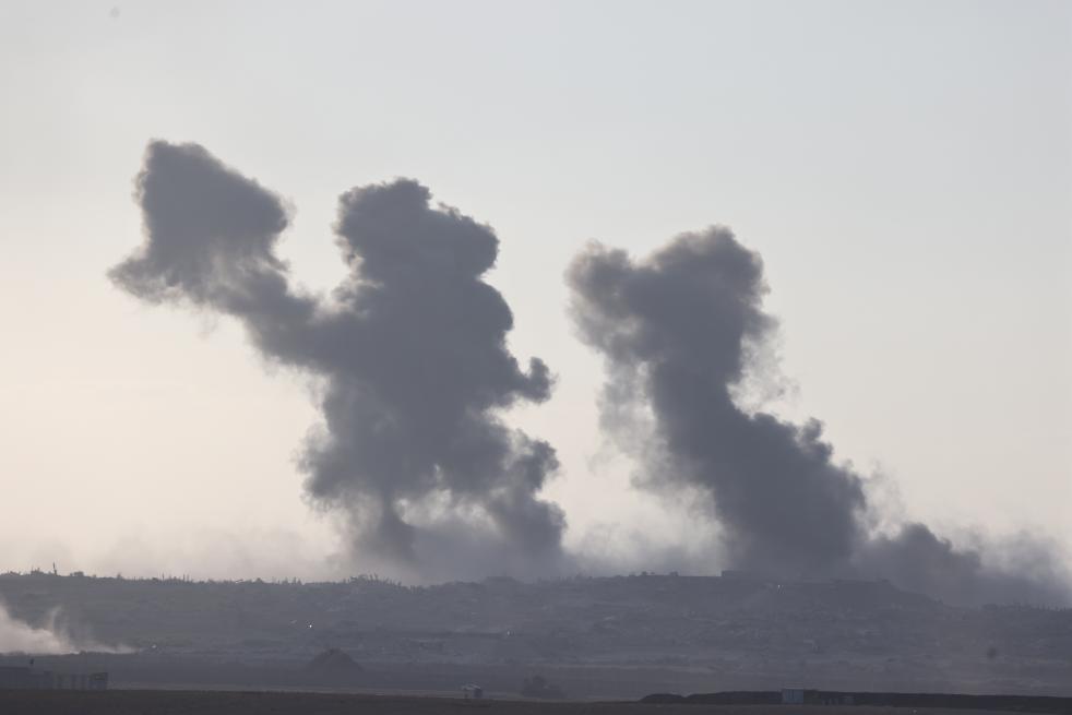 这是9月16日从加沙边境以色列一侧拍摄的加沙地带遭袭后升起浓烟。新华社发(贾马尔·阿瓦德摄)