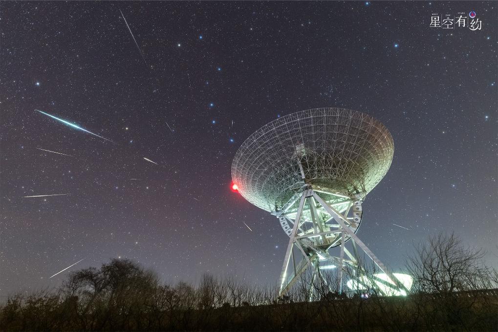 2020年1月3日在北京密云区不老屯镇拍摄的象限仪座流星雨(多张叠加)。(杜超摄,星联CSVA供图)
