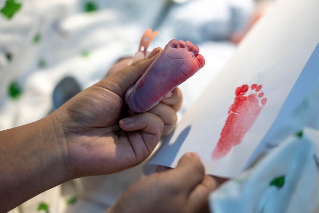 2026年1月1日,西藏自治区人民医院妇产科助产医生次拉为新生儿印脚印。新华社记者 旦增尼玛曲珠 摄