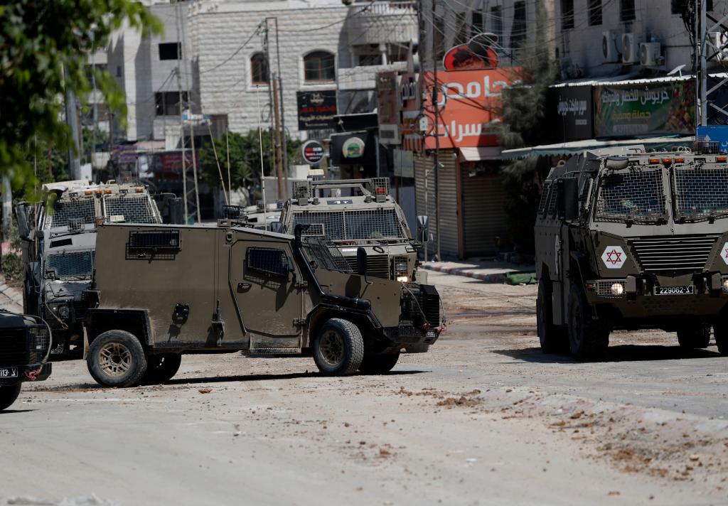 这是8月22日在约旦河西岸北部的图勒凯尔姆拍摄的以军车辆。新华社发(艾曼·诺巴尼摄)