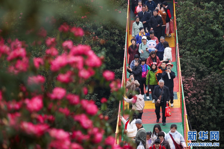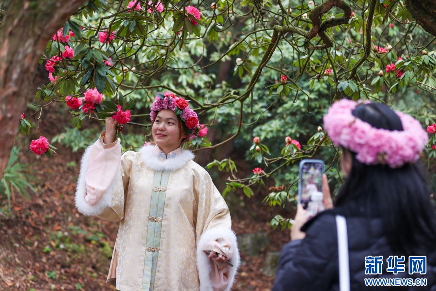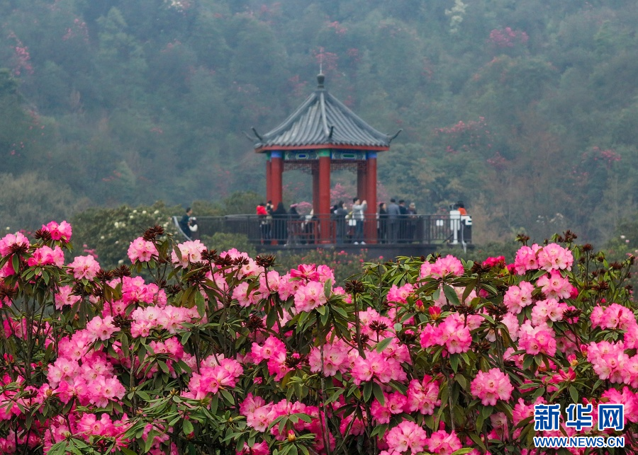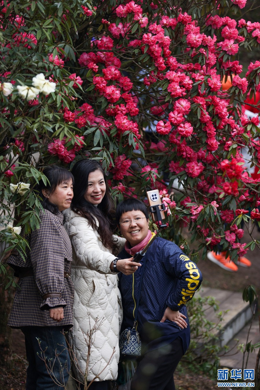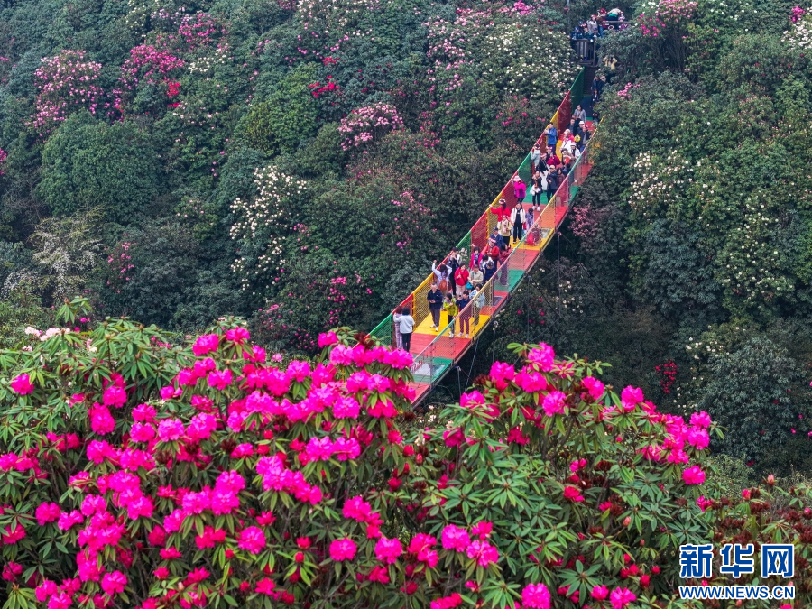 4月6日,游客在贵州省毕节市百里杜鹃景区踏青赏花。新华网发(李华摄)