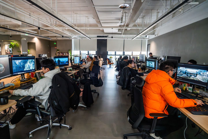 《哪吒之魔童闹海》(《哪吒2》)视觉特效制作公司墨境天合成都数字图像科技有限公司的工作区(2025年2月10日摄)。新华社记者 薛晨 摄
