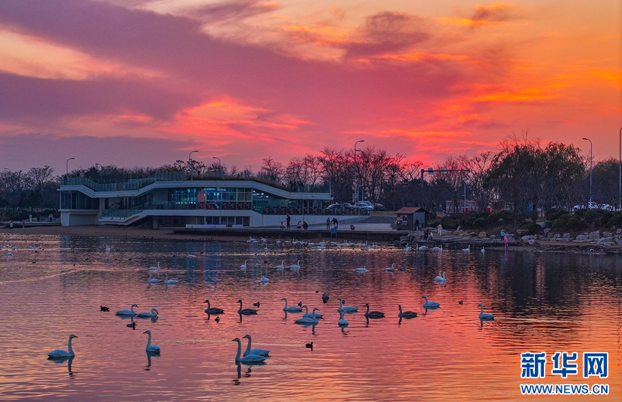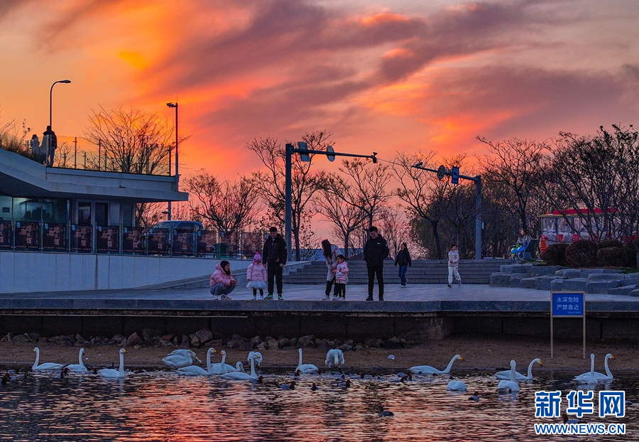 11月30日,在山东省荣成市樱花湖体育公园水域,栖息着大天鹅等野生鸟类,众多市民和游客前来观赏、拍照。近年来,荣成市在生态环境保护方面不断发力,推进实施全域水环境治理,修整河道、建设湿地公园、新增绿化面积和实施生态修复工程等工作。充分发挥“大天鹅之乡”的生态资源优势,促进生态、文化、旅游产业融合发展。