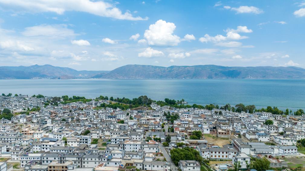 云南省大理市古生村与洱海风光(无人机照片,5月6日摄)。新华社记者 胡超 摄
