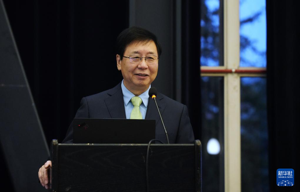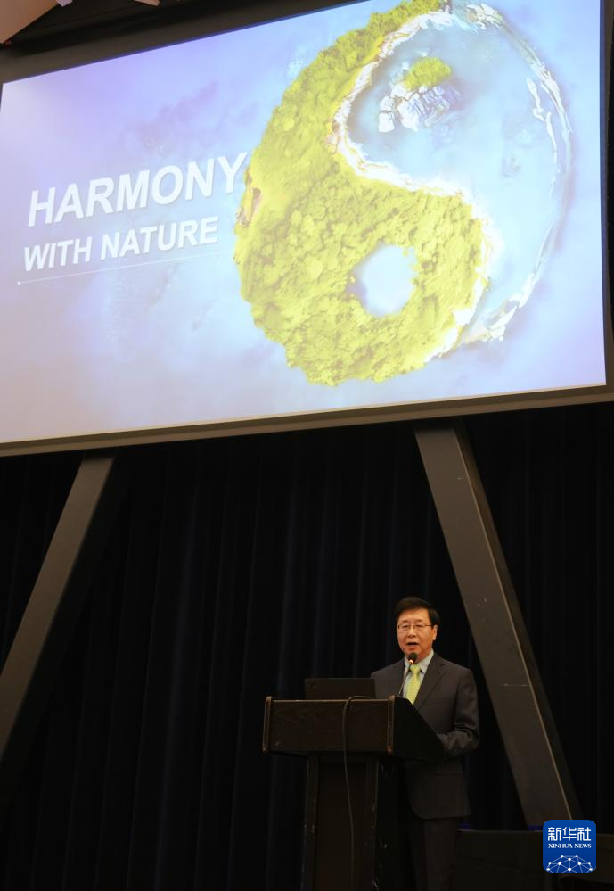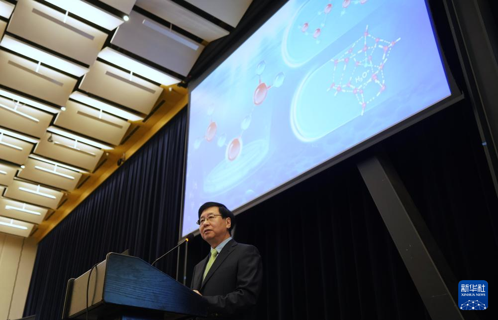 11月20日,在美国加利福尼亚州伯克利,中国工程院院士曲久辉领取2024年度可持续发展杰出研发奖后做主旨演讲。 新华社记者 吴晓凌 摄
