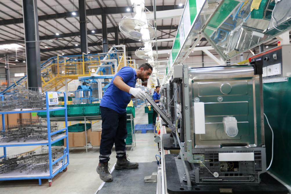 2023年8月10日,在埃及苏伊士省的中埃·泰达苏伊士经贸合作区,员工在工厂生产线上工作。新华社记者 隋先凯 摄