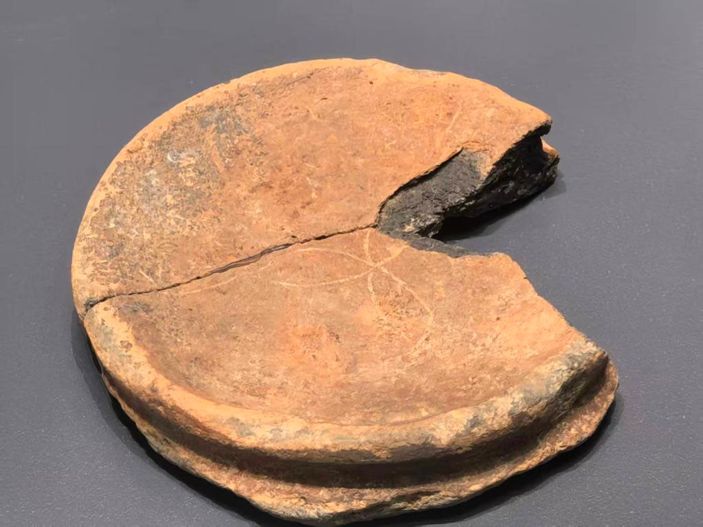 这是双墩博物馆内展出的一件三叶花瓣形刻划符号。(双墩国家考古遗址公园管理处供图)