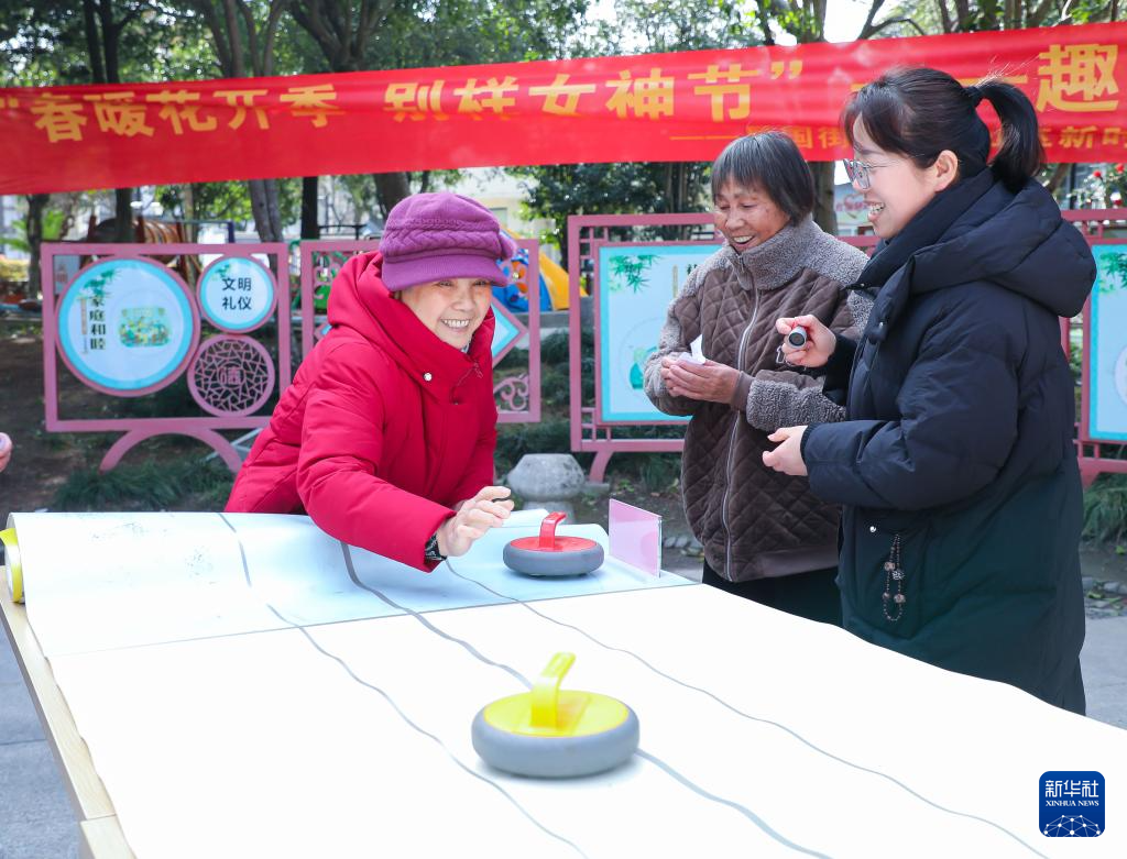 3月6日,在浙江省舟山市定海区昌国街道香园社区,居民参加“三八”国际妇女节趣味活动。新华社发(张磊摄)