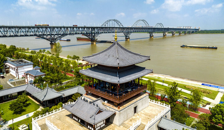 图为2024年8月21日拍摄的空中俯瞰江西省九江市琵琶亭。傅建斌 摄