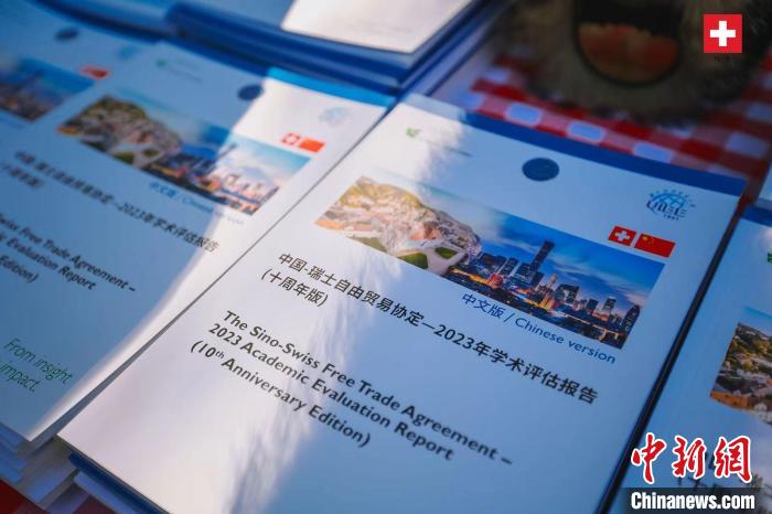 图为《中国-瑞士自由贸易协定——2023年学术评估报告(十周年版)》中文版。 瑞士驻华使馆供图