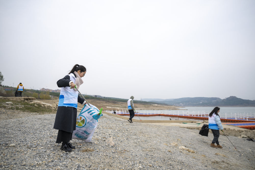 2024年12月8日,丹江口市石鼓镇鞍子垭村志愿者在玉皇顶码头水域开展守水护水志愿服务。