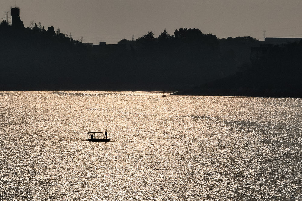 2024年10月28日,清漂员在丹江口水库作业(无人机照片)。