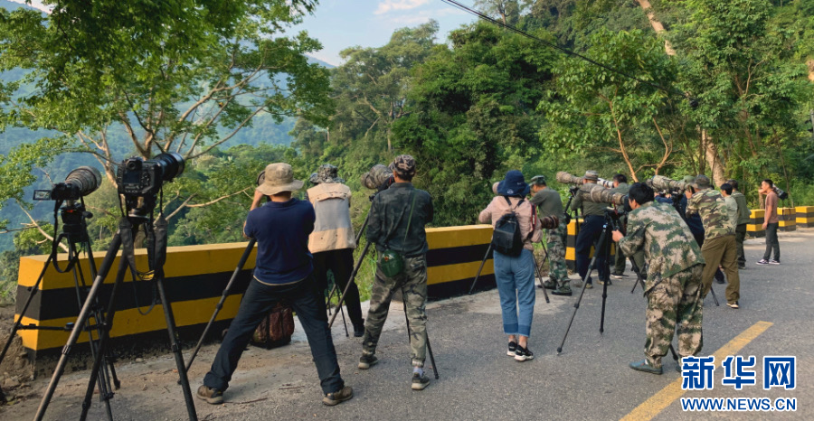 鸟类摄影爱好者在盈江县石梯村拍摄(资料图)。新华网发(盈江县融媒体中心 供图)