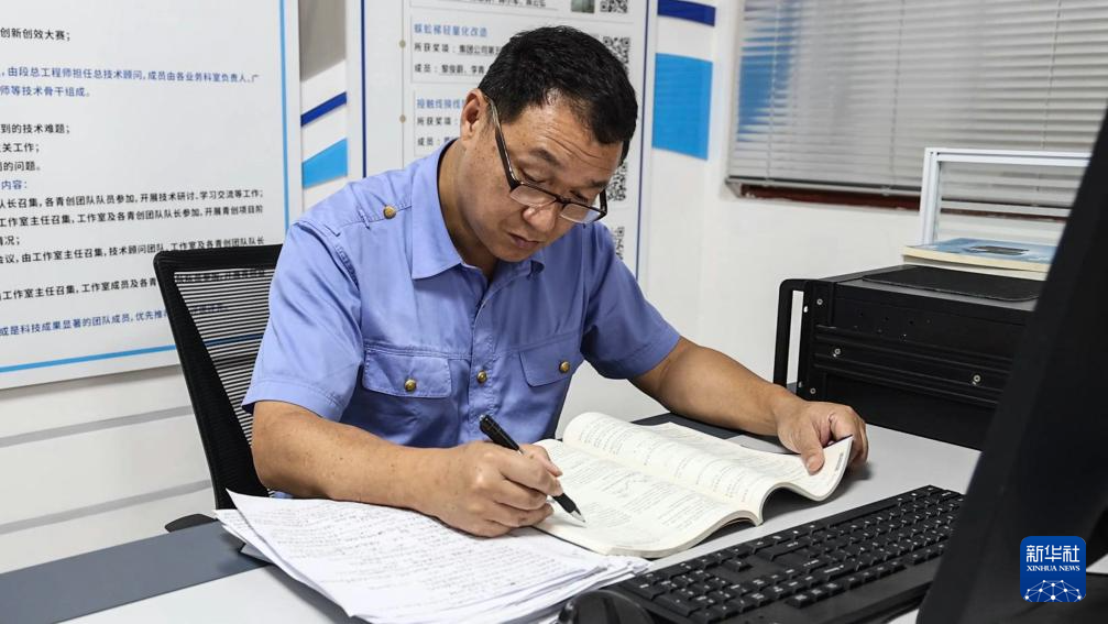 彭春林在彭春林创新工作室阅读专业书籍(4月25日摄)。新华社记者 张爱林 摄