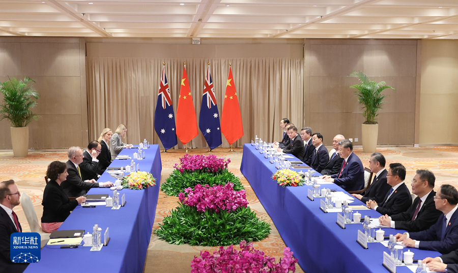 当地时间11月18日上午,国家主席习近平在里约热内卢出席二十国集团领导人峰会期间会见澳大利亚总理阿尔巴尼斯。