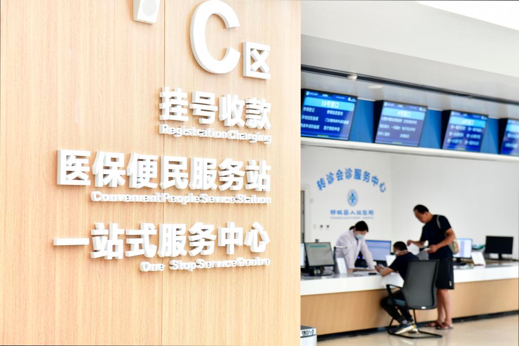 2025年8月21日,在山东省郓城县人民医院医保便民服务站,居民在办理医保业务。新华社记者 郭绪雷 摄