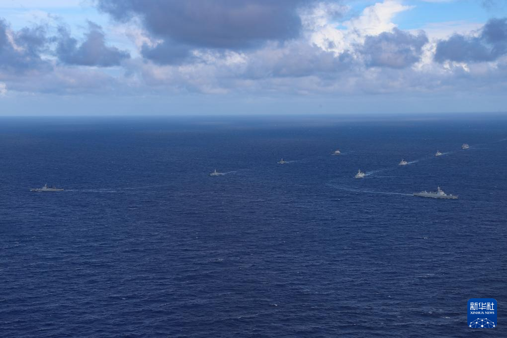 7月17日,参加联合演习的中俄海上舰艇编队完成全部预定课目演练,在广东湛江附近某海域举行分航仪式。新华社发(杨捷 摄)
