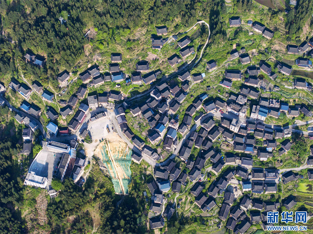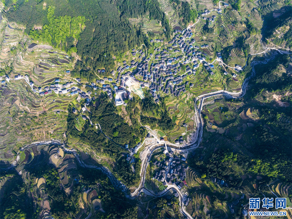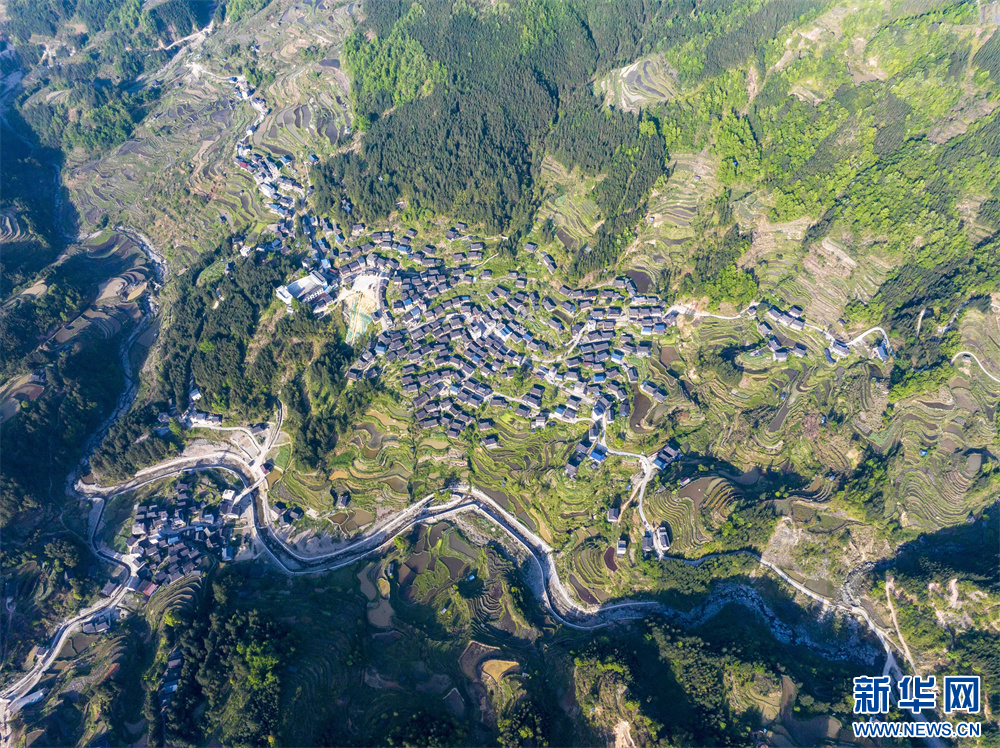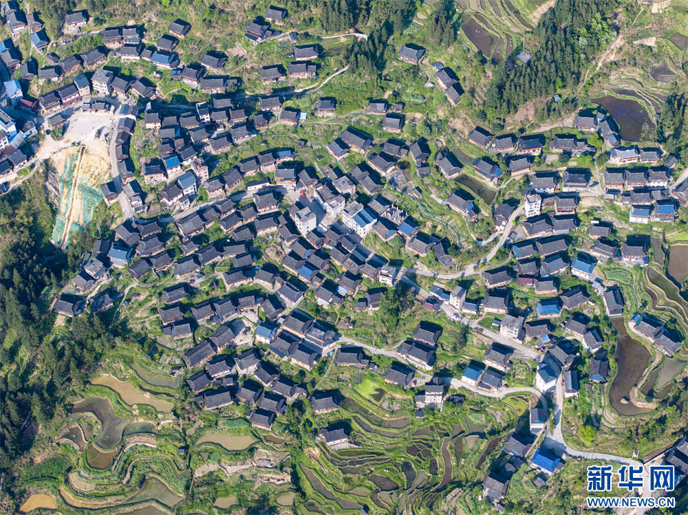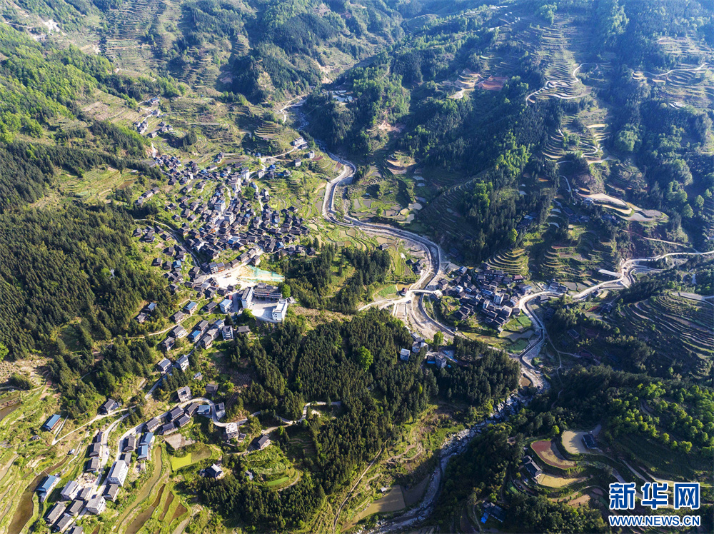 4月16日,在贵州省从江县丙妹镇拍摄的传统村落归林壮寨(无人机照片)。新华网发(吴德军 摄)