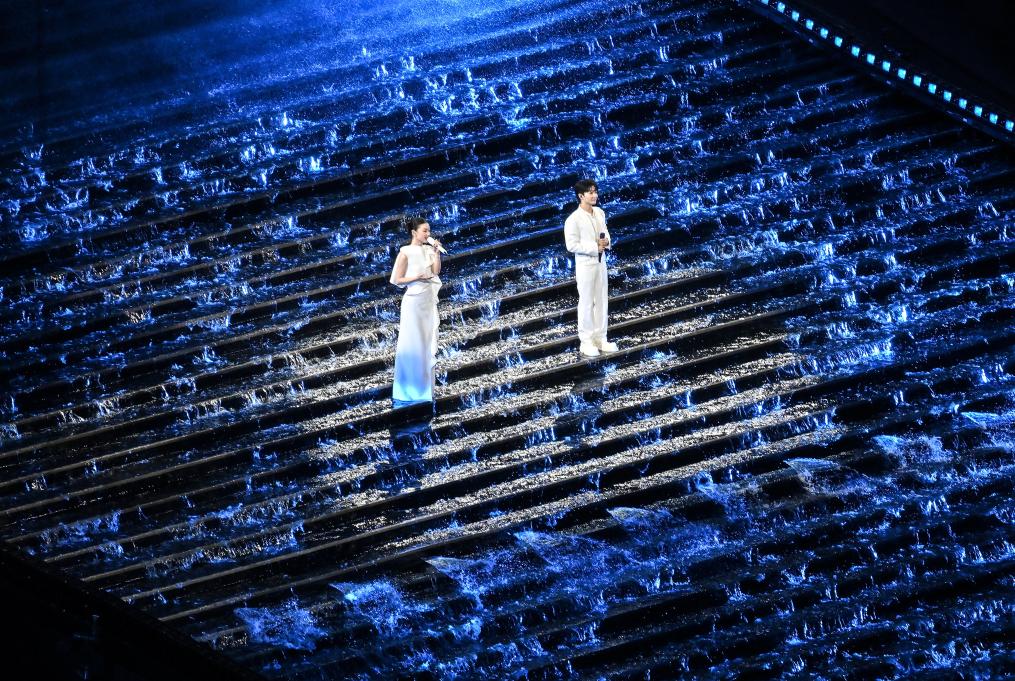 11月9日,歌手周深(右)和单依纯在开幕式现场演唱。新华社记者 李鑫 摄