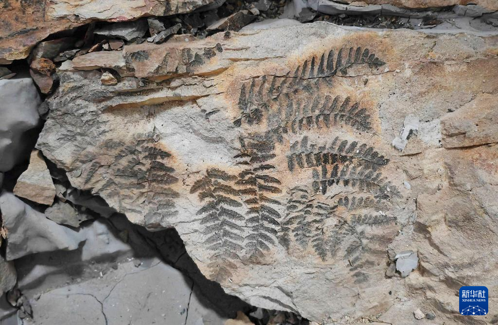 这是在内蒙古自治区乌达二叠纪植被化石产地发现的植物化石(资料图片)。 新华社发