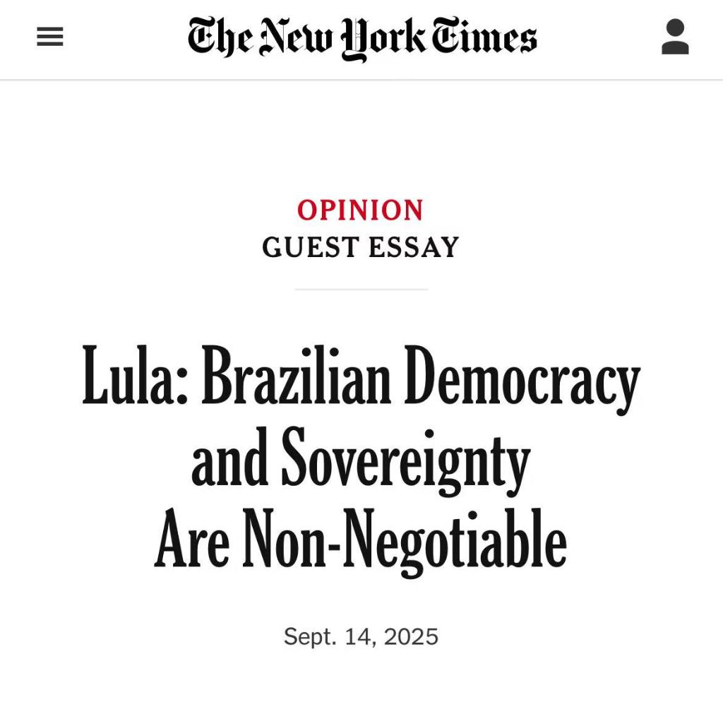 巴西总统卢拉9月14日在美国《纽约时报》观点专栏发表客座文章。