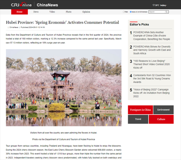 国际在线ChinaNews英文网发文称赞湖北“春日经济”激活消费潜力