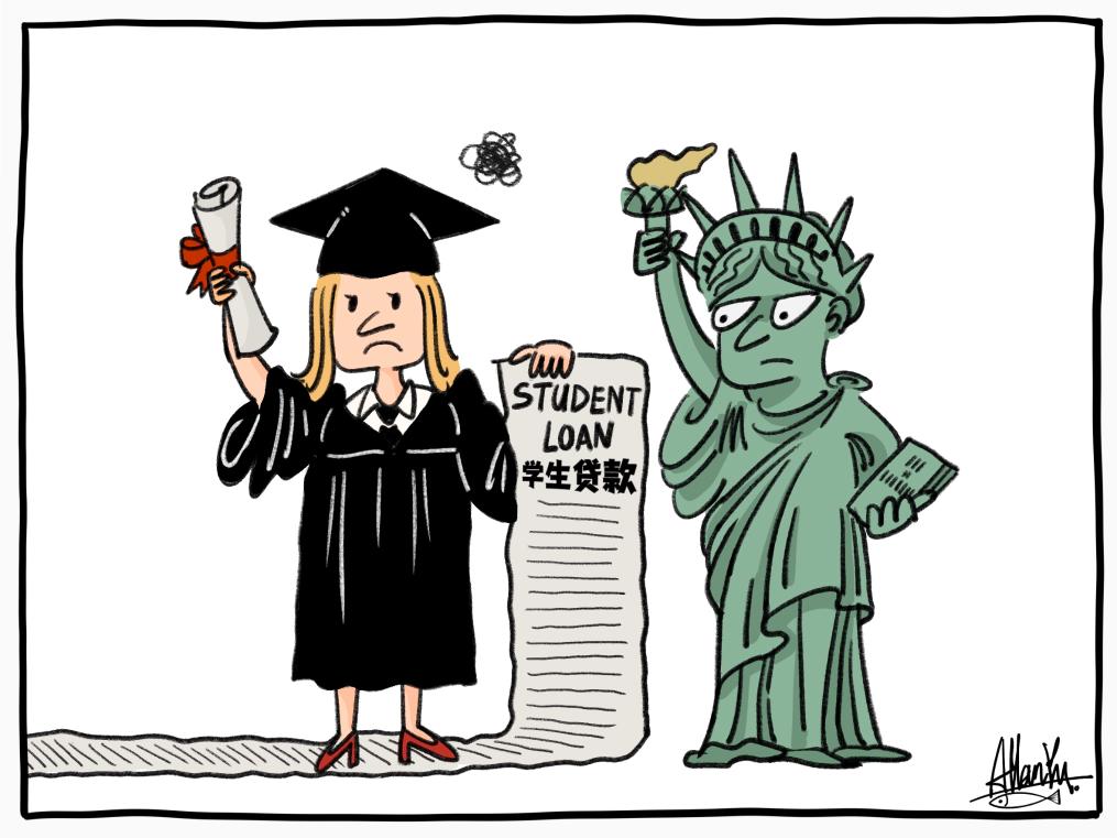 在美国,昂贵的高等教育费用和随之而来的大额学生贷款已成为很多人的“不能承受之重”。有的人甚至“定期卖血去付房租和学生贷款”,还有的人“退休后仍在还学生贷款”……学生贷款成为不少美国人“一生的枷锁”。