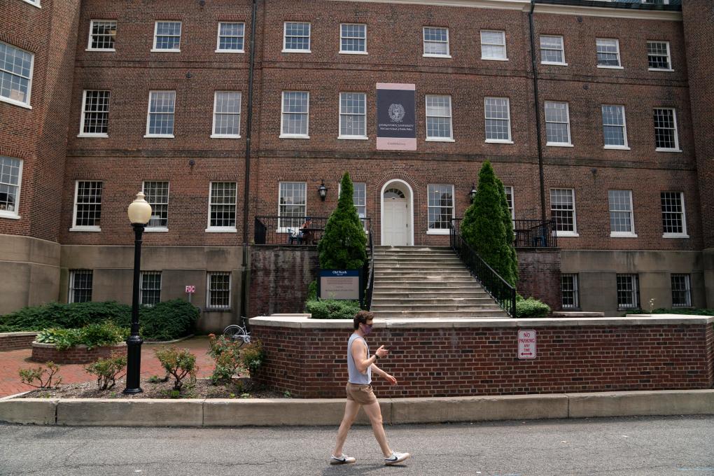 2020年7月7日,一名男子走在美国华盛顿的乔治敦大学校园内。(新华社记者刘杰摄)