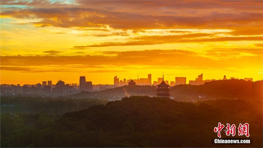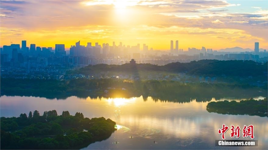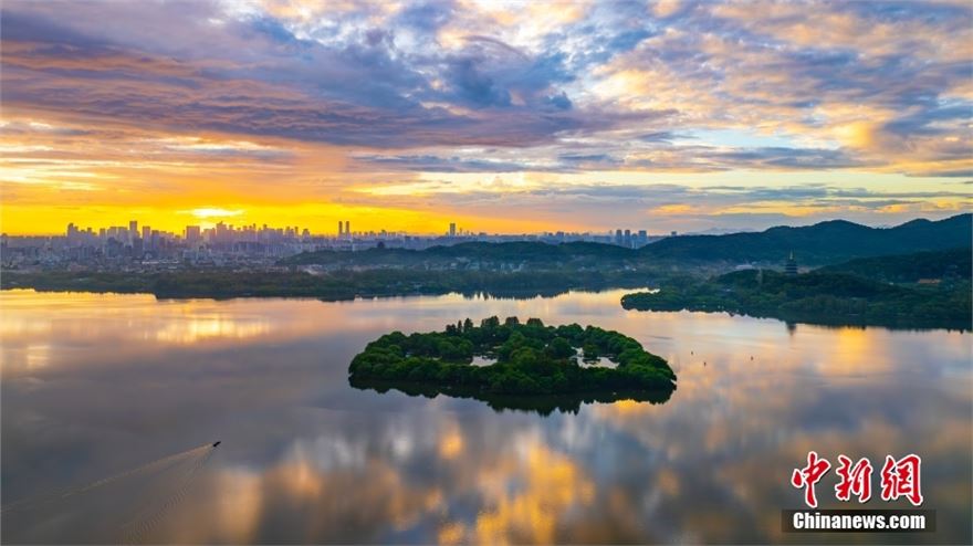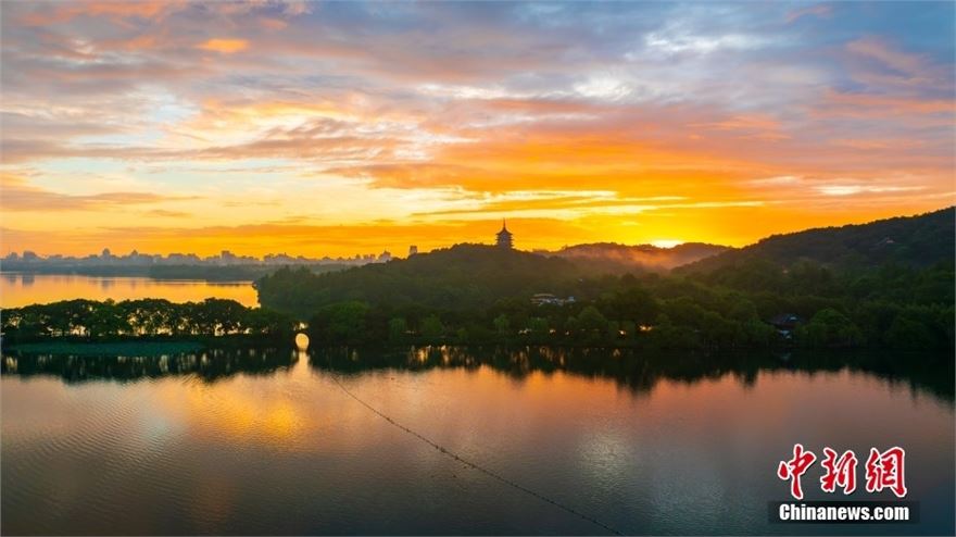 2024年9月17日,浙江杭州,西湖景区展现了令人叹为观止的朝霞美景。天空被绚烂的红霞染色,与湖水相映成趣,构成了一幅绝美的画卷。
